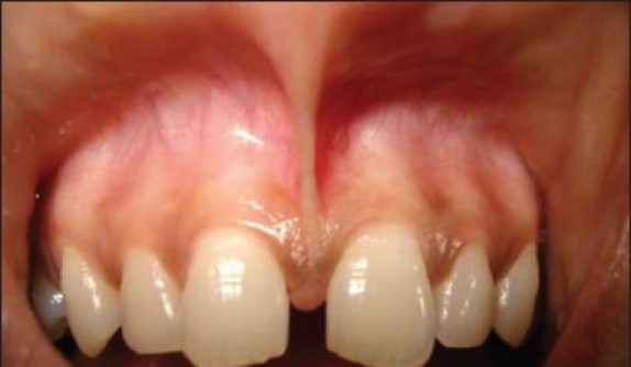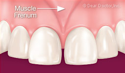 - Abnormal frenal attachment (band of muscle fibers that you can see attaching the gums to the lip tissue)